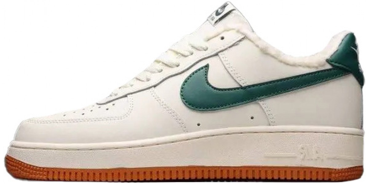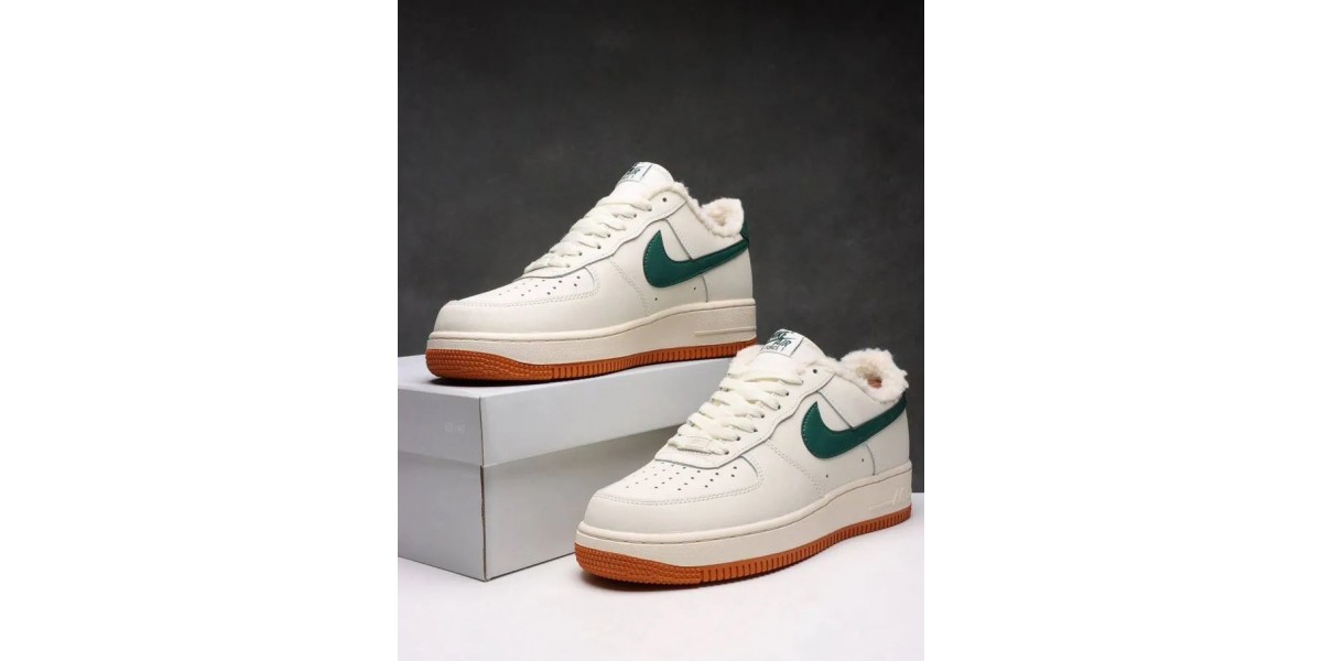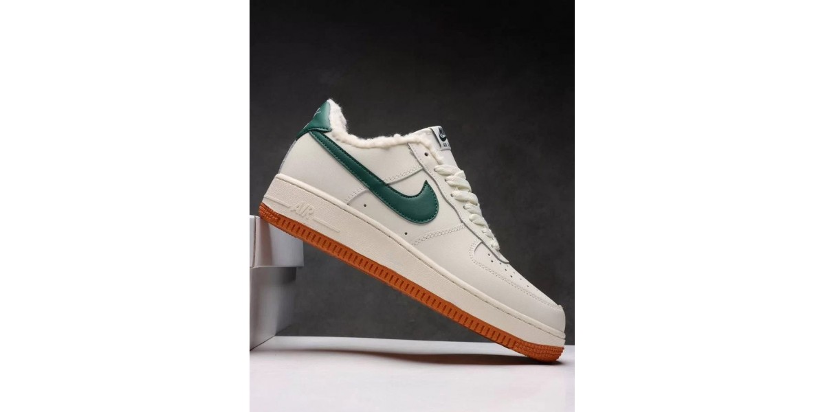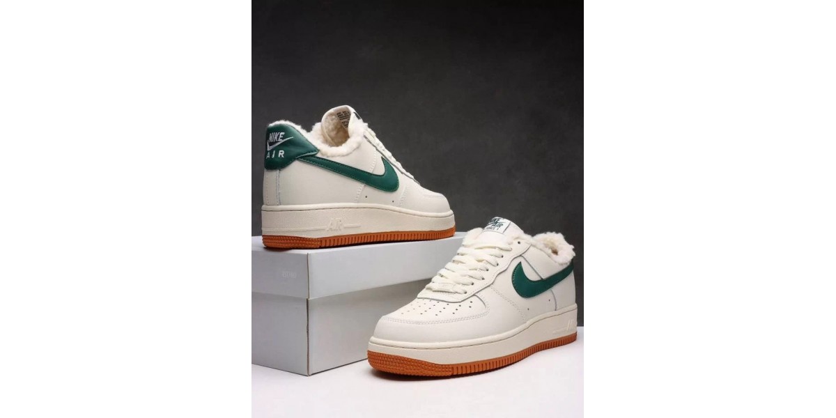 Nike Air Force 1 Low White/Green/Brown с мехом